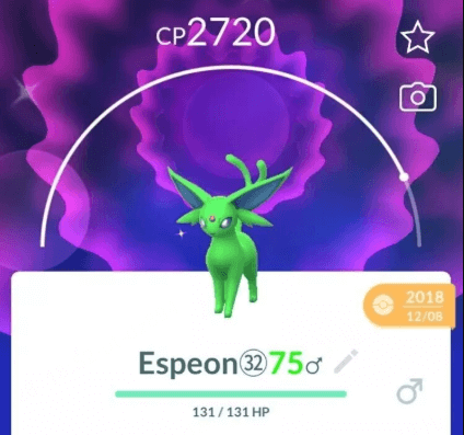 | Shiny Espeon | Psychic | Lime green | 3583 | |