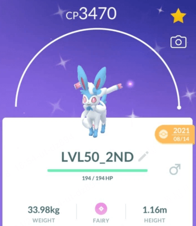| Shiny Sylveon | Fairy | Baby blue and pink ribbons | 3470 |